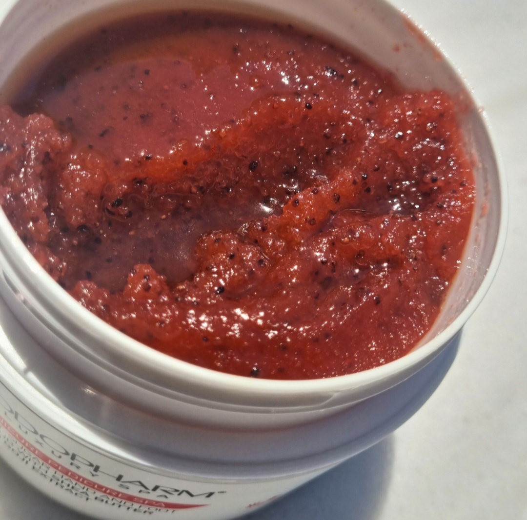 Το απολεπιστικό βασίζεται πλήρως σε φυσικά vegan έλαια, λίπη και κεριά. Έχει υπέροχο φρουτώδες άρωμα κόκκινων φρούτων. Μοιάζει με σορμπέ φράουλας! Όταν εφαρμόζεται σε υγρό δέρμα μια μικρή ποσότητα δεν προσφέρει μόνο απολέπιση αλλά και εξαιρετική ενυδάτωση, τυλίγοντας το δέρμα με ένα λεπτό άρωμα που δεν έχει αλλεργιογόνα. Το άρωμα προέρχεται από εργαστήριο της Γαλλίας και αποτελεί μια από τις πιο πολυτελείς συνθέσεις κόκκινων φρούτων. Αυτό το άρωμα περιέχεται και στα άλατα με Goji Berry καθώς και στην κρέμα με πρωτόγαλα και προσαρμογόνα που συνδυάζονται τέλεια για μια ολοκληρωμένη φροντίδα δέρματος.